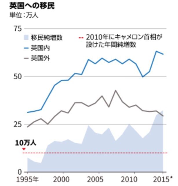中でも移民に関しては、EU加盟国は人の移動が自由なので流入が止められず、勿論移民の質が良ければ良いのですが、イギリスには税金を納めないのに行政サービスを受けるだけ移民が多かった。2015年は30万人を越える移民があったそうです。