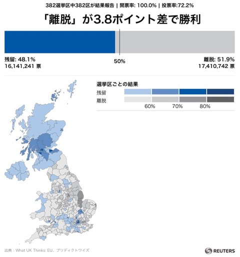 まあ日本の場合ここまで僅差じゃなく、むしろ圧勝だったので、イギリスの皆様のほうが、まだ理性的だったのかもしれません。