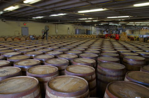 (富士御殿場蒸留所で主に使われている、バーボンの空き樽。フォアローゼズ蒸留所にて撮影。今回のワインカスクフィニッシュにも、バーボン樽由来の華やかなアロマが潜んでいる。Photo by T.Ishihara)