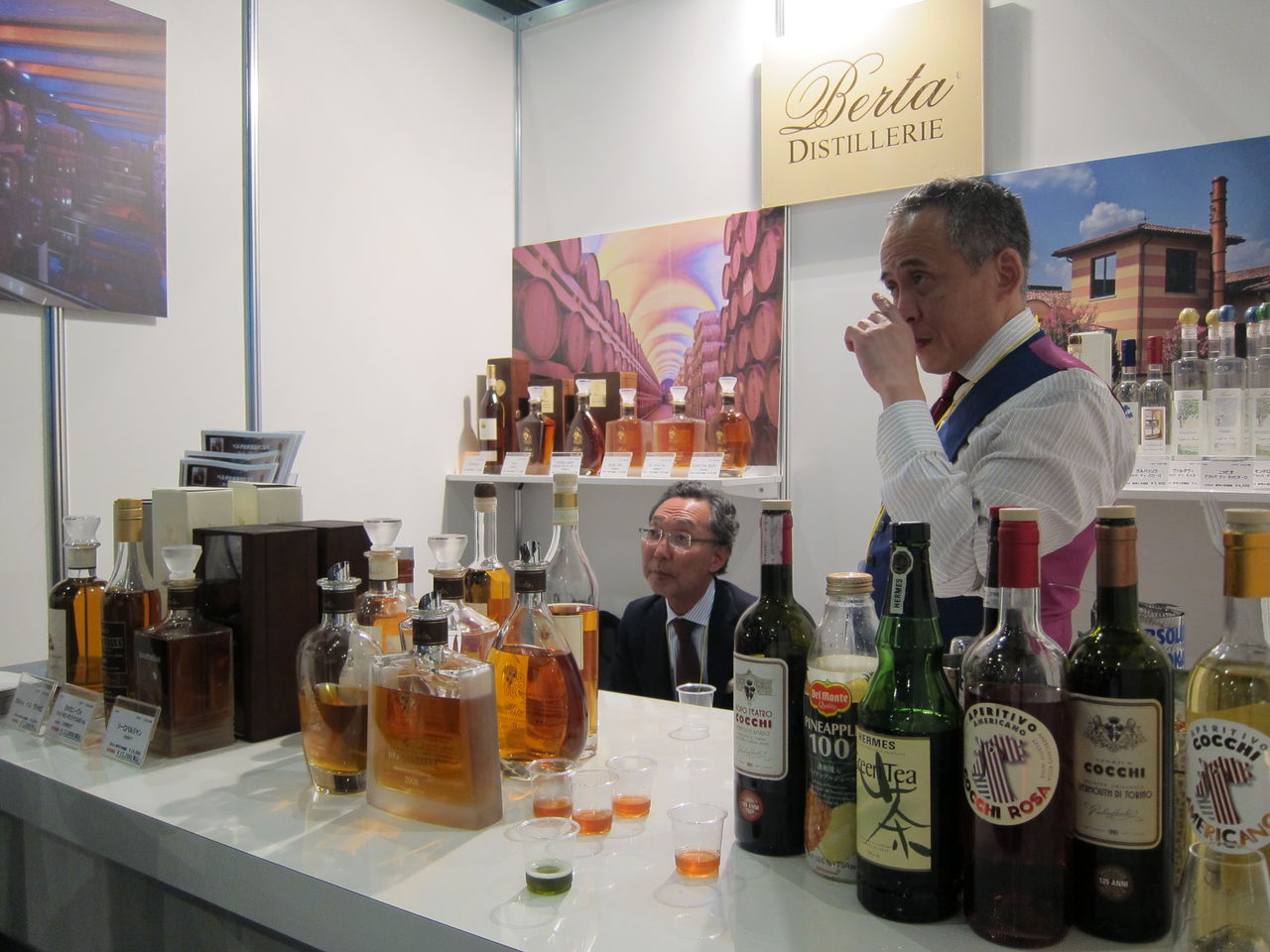 ウイスキーではありませんが、大手グラッパメーカー、ベルタ社の正規輸入元である株式会社フードライナーのブースは、今回最も気合の入ったブースの一つと言えます。
