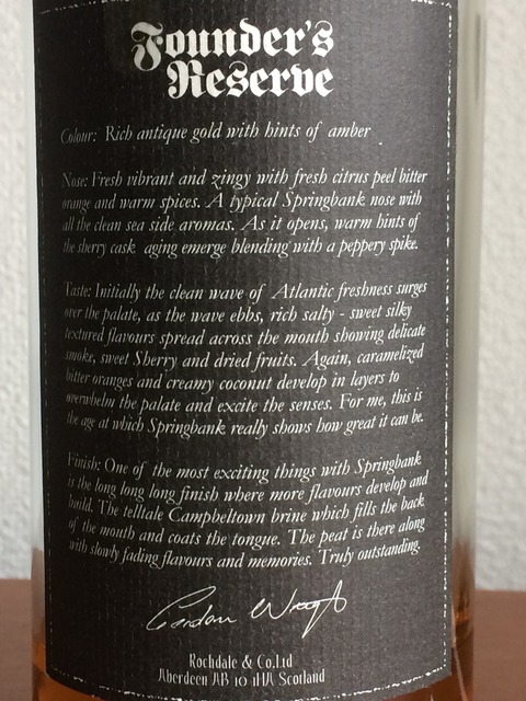 スプリングバンク 16年 ファウンダーズリザーブ ブラック 46%