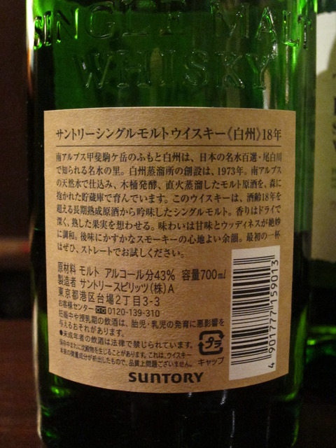 確かに、白州はあまりジャパニーズと言う感じはしないですね。スコッチではなく日本人に合うウイスキーを造ろうとしていたサントリーが、余市、宮城、白州、山崎の中で一番スコッチらしい蒸留所を作ったというのは、なんだか皮肉というかおかしな話だなと感じます。