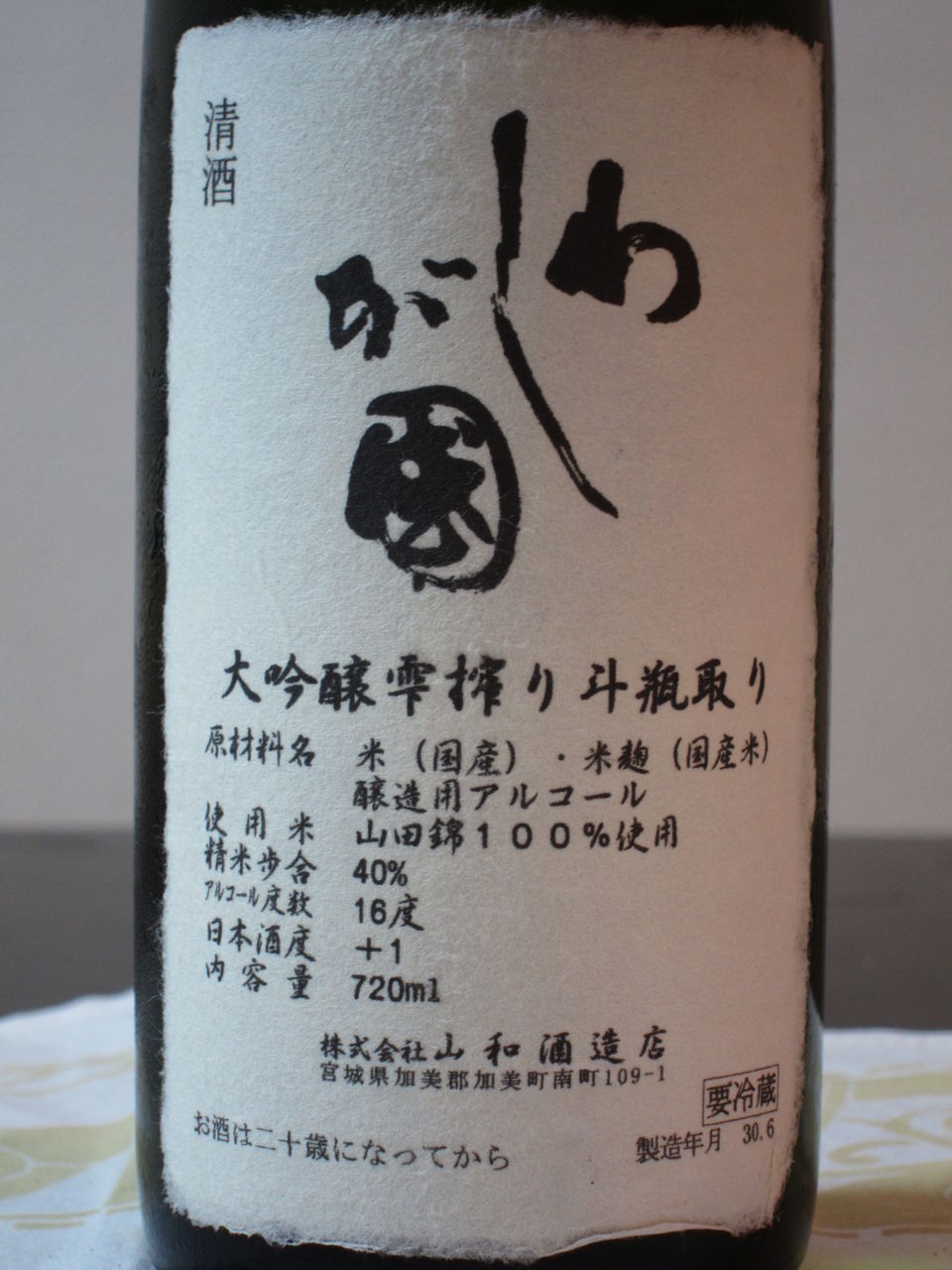 ウイスキー仲間主催、日本酒会のお土産品。宮城県は山和酒造店の地元向け銘柄「わしが國」、そのコンクール向け本気仕込みの1本なのだとか。