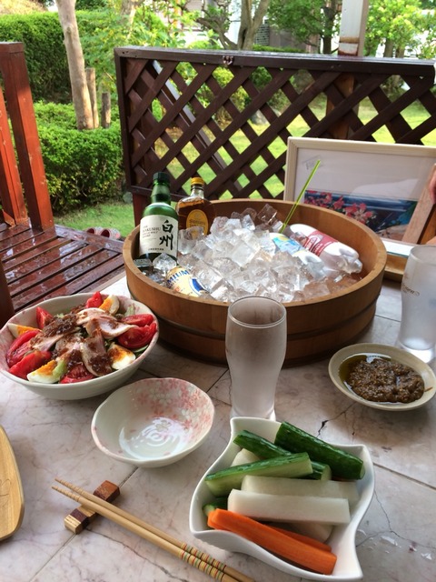 今回は雨上がりの夕方から、テラスで軽食をハイボールとともに。そしてその後はホームバーでじっくりと秘蔵のウイスキーを楽しむ。大変充実した1日となりました。