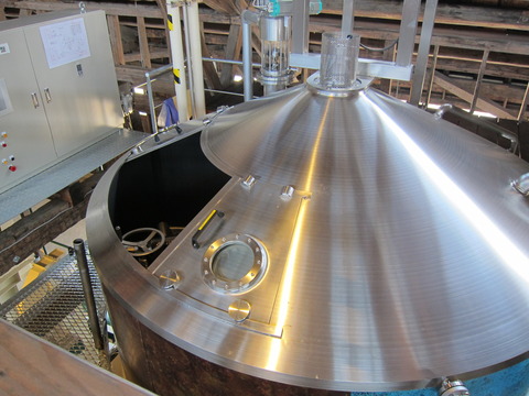 (2018年から導入した三宅製作所製のマッシュタン。以前は密造時代のようなタンクを使っていたが、このマッシュタンの導入で麦芽の粉砕比率から、糖化の温度などの各種コントロールが可能となり、酒質が格段に向上した。)