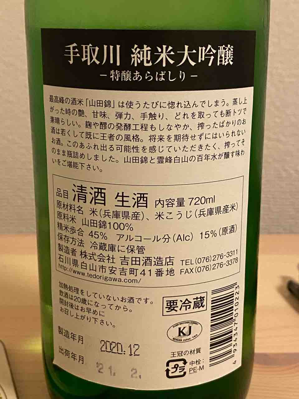味は文句なし。ですが、あらばしり(荒走り)は日本酒を絞る際に最初に出てくるお酒で、中取りはそのあと出てくるお酒。つまりこのスペックが同時に存在することは無いと思うのですが、どういうことなの?と。。。