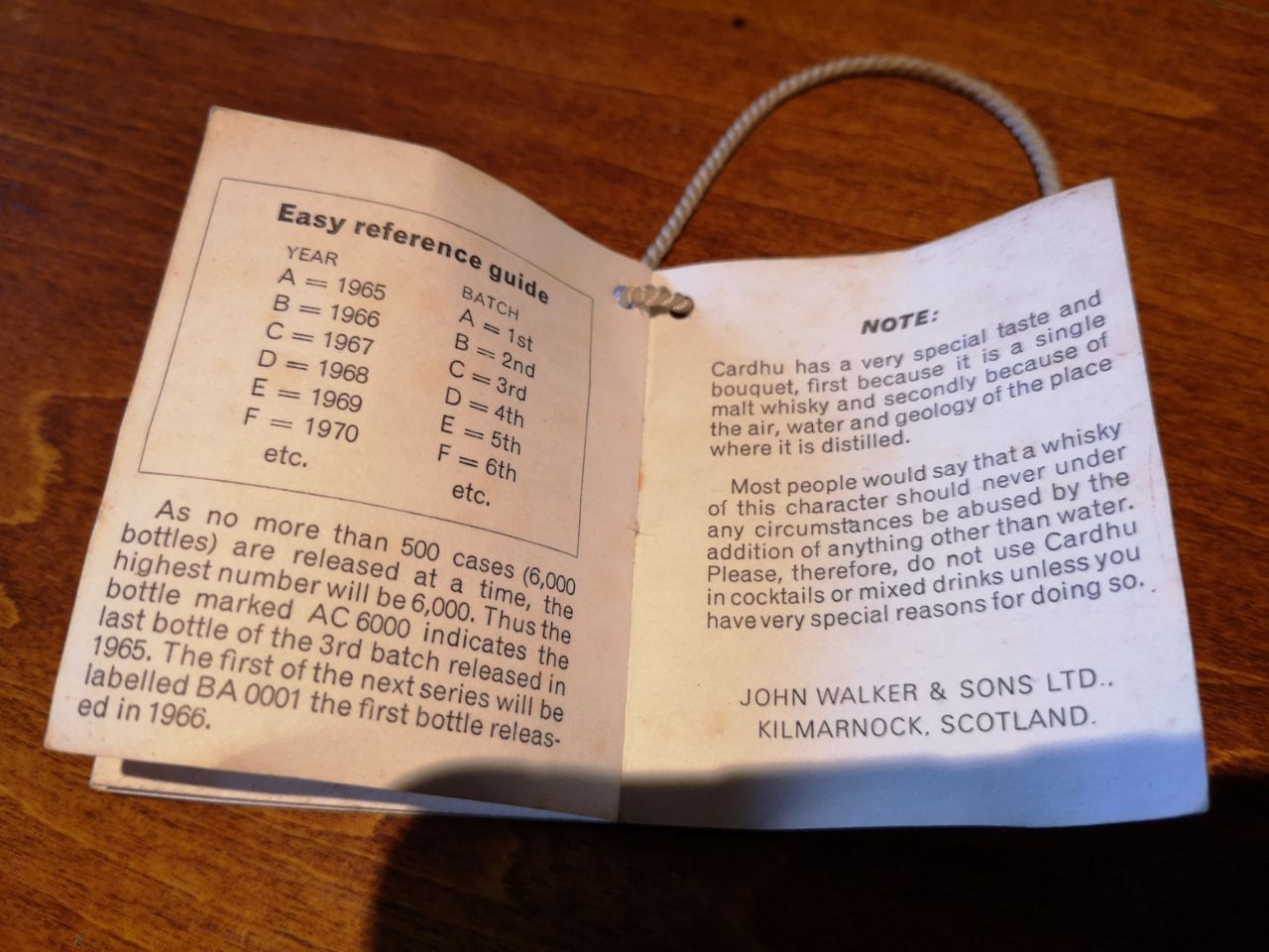 ただ1960年代のボトルについては、付属する冊子(上写真)に書かれているように、出荷が1ロット6000本という少量生産を1年間のなかで複数作っていた模様。酒質と個性が強かった時代ゆえ、各ロットによって香味差が大きかったようにも感じられます。