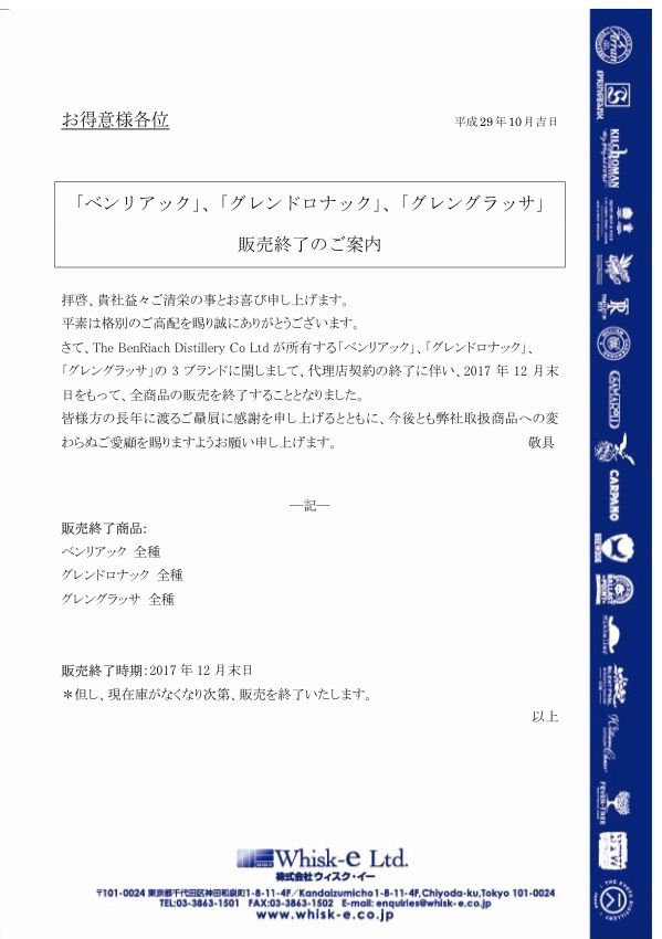 まず、報道に先だって展開されていた情報は、以下の資料に準ずるもの。既存竹鶴ラインナップ4種が、原酒確保困難を理由に2020年3月末をもって終売となることです。