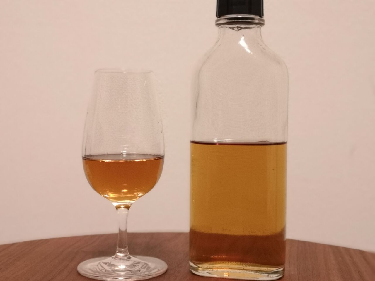 香り:ややドライでハイトーン。バニラや洋梨を思わせる麦芽の甘さに、カシューナッツ、青竹のような植物っぽさを伴うウッディさ。単調気味だが嫌みな要素は少ない。