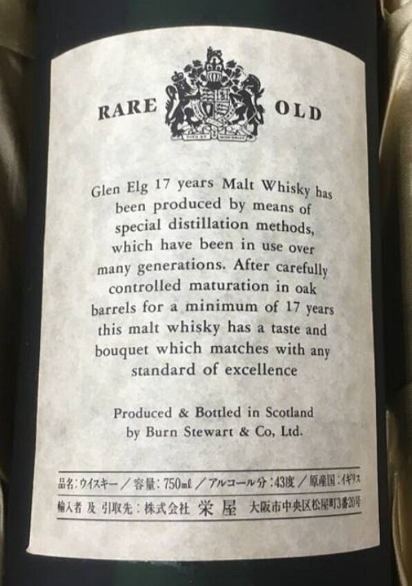1990年、ディーンストン蒸留所を買収したバーンスチュワート社がリリースしたピュアモルト。先日紹介したグレンエルグ17年のスタンダードグレードに辺り、こちらは比較的多くのボトルがリユース市場で見られます。