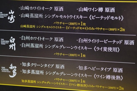 これらと同タイプのウイスキーは、各蒸留所での試飲提供に加え、マガジンライブなど各種イベントのサントリーブースにもありましたので、既に飲まれている方もいると思います。