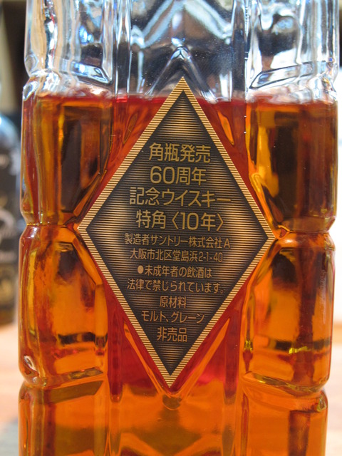 1996年から1997年、角瓶発売の60周年を記念してリリースされた懸賞向けの角瓶。10年後の70周年では角瓶誕生年である1937年にちなんだ本数分の特角が懸賞となったようですが、この60周年ではノーマル角瓶製品を飲んでポイントを貯めると全員貰える懸賞品だったようです。