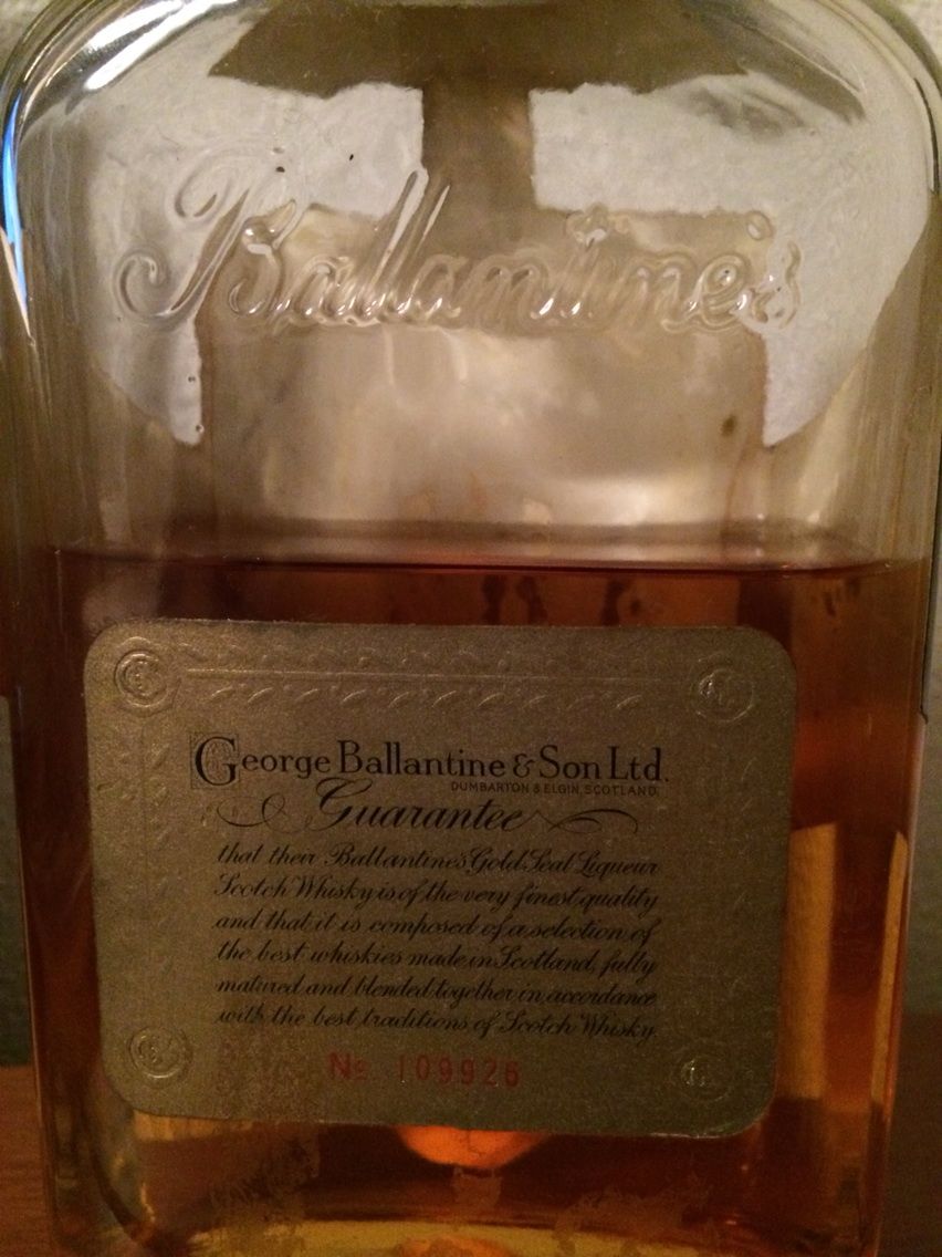 その他、写真のようにボトル背面にBallantine'sの加工がされているので、これがあれば1960年代流通は確定なのですが、なかなかここまで見せてくれないんですよねぇ(笑)